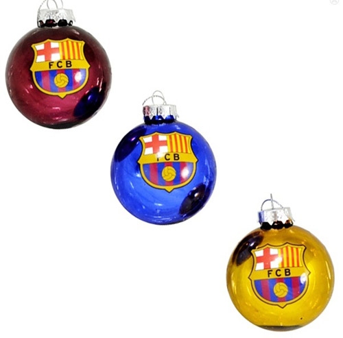 Modrá-červená-žltá to sú farby Barcelony. Na každej vianočnej guli je týmové logo. Urob si radosť a ozdob si svoj vianočný stromček.