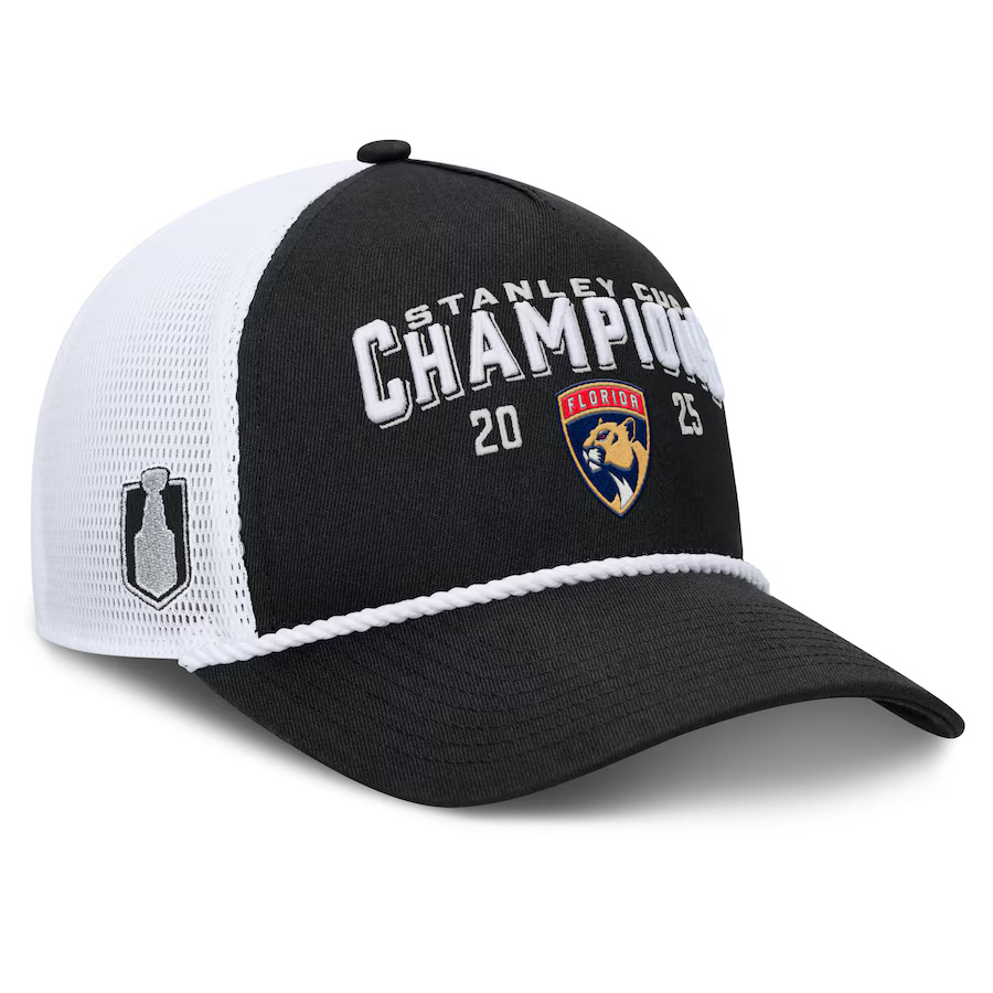 Florida Panthers čiapka baseballová šiltovka 2025 Stanley Cup Champions A-Frame Roper Meshback Adjustable Black