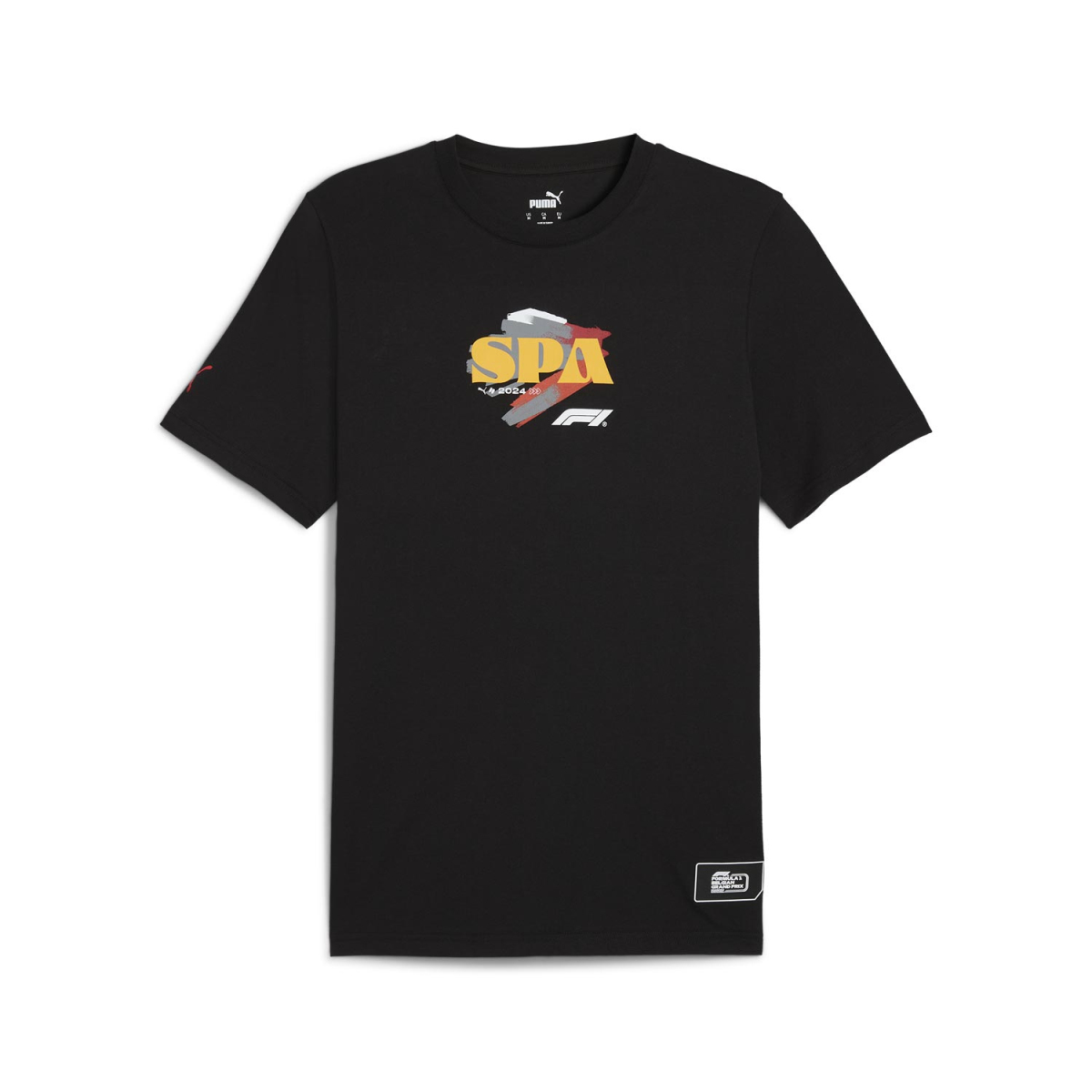 Tričko má klasický čierny základ, na ktorom vyniká farebný motív okruhu Spa-Francorchamps. Na prednej strane je umiestnené štýlové logo Spa s charakteristickým obrysom okruhu a logom Formuly 1. Zadná strana trička obsahuje ďalšiu grafiku okruhu s nápisom "Formula 1 Belgian Grand Prix 2022". Na ľavom rukáve sa nachádza logo Puma, ktoré dodáva tričku športový vzhľad.