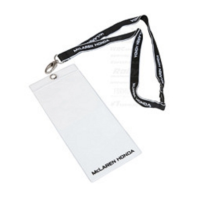 Šnúra na krk s robustnou kovovou sponou, vo farbách McLaren Honda F1 Team. Súčasťou je tiež praktické púzdro na vstupenky.