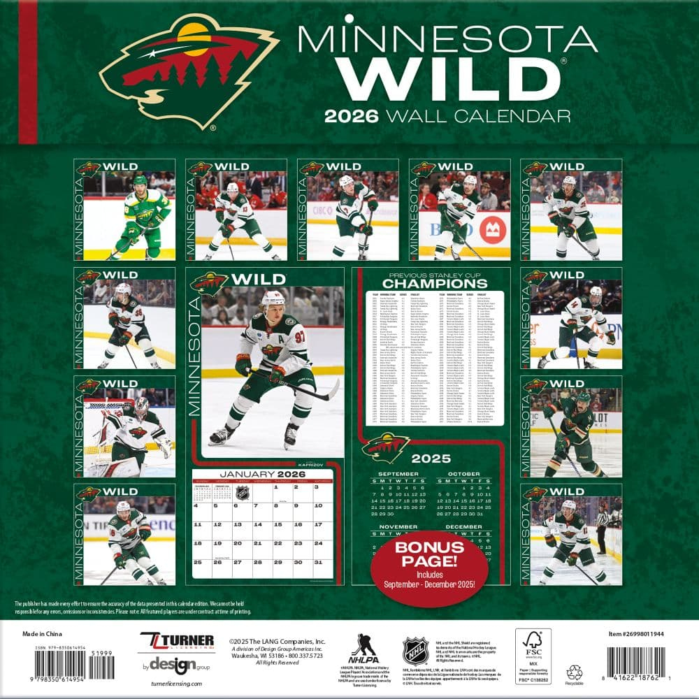 Minnesota Wild kalendár 2026 Wall