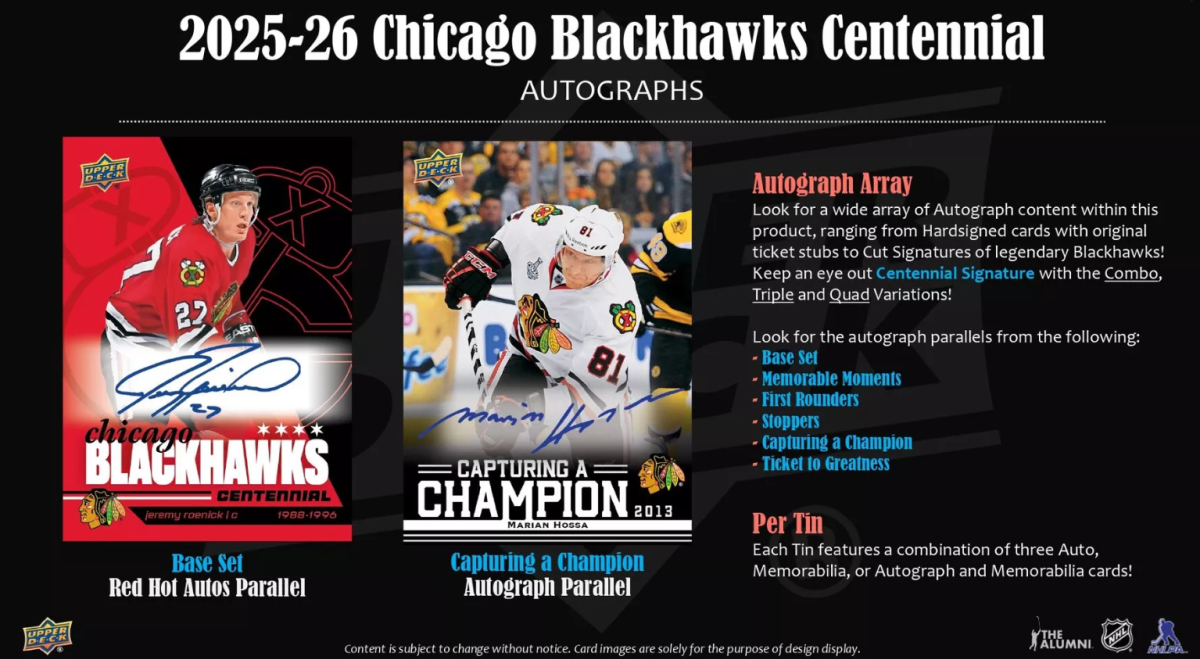 NHL boxy hokejové karty NHL 2025-26 Upper Deck Chicago Blackhawks NHL Centennial Hobby Box
