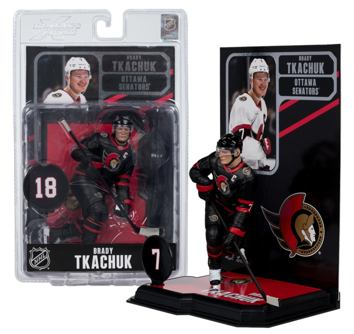 Ottawa Senators figúrka Brady Tkachuk #7 SportsPicks Black Jersey